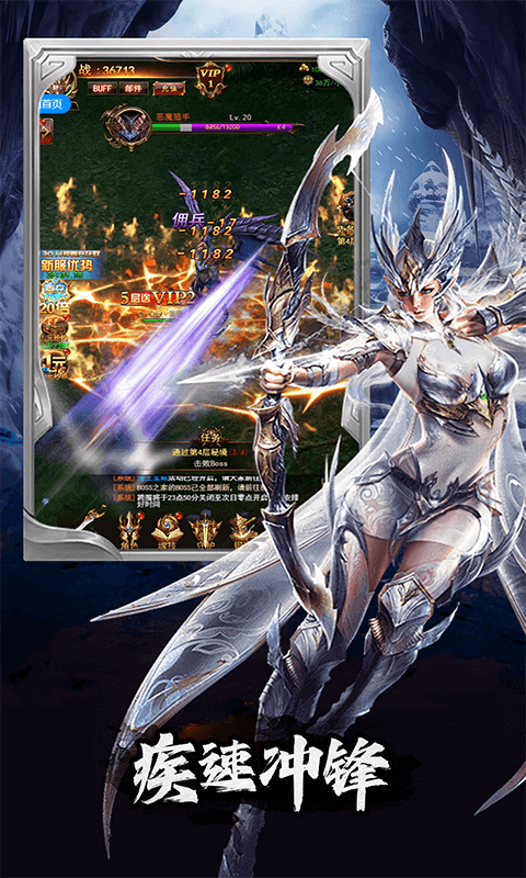 游戏还原经典魔幻世界!战法弓三大职业任君选择,快化身救世勇者,书写你的传说! 闯关直升VIP10,华丽翅膀、炫酷神魔、强力佣兵在线即得!玩法简单易上手,福利满满享不停! 在线PK刷Boss,离线照样能升级! 多种跨服玩法,自我突破永无止境! 三大职业风格迥异,技能炫酷秀翻全场!