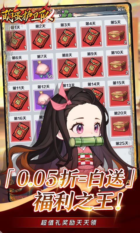 萌蛋护卫队(0.05折九柱之战)是以人气动漫为背景的沉浸式放置策略手游;佛系放置与深度策略完美交融!一键挂机自动积累资源;Q萌斩鬼之王化身鬼杀队组建专属猎鬼小队。斩尽世间之恶鬼,书写属于你的斩鬼传奇!开启你的猎鬼之旅,成为斩尽恶鬼的巅峰剑士,守护人间最后的黎明!
