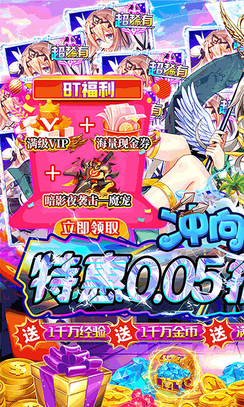这是一款全新的二次元美女卡牌回合制手游,水火风光暗高资五星英雄还有满级VIP;全场充值全部0.05折,所有商品超低折扣,并且还有送代金券,可抵充值档位。还有美人公寓助你召唤。赶紧加入战斗吧